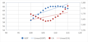Consumo de alimento. En la práctica hay una correlación entre ganancia de peso y consumo de alimento alrededor de 0.80. Y a su vez está muy correlacionado con el consumo de agua. Actualmente en pollo de 50 días de edad, la ganancia de peso se maximiza con consumos de 110 y 102 g promedio por día en machos y hembras, respectivamente. Pero no debe ser considerado como una recomendación general sino solo como una idea a medir en cada granja, en diferentes épocas. La propuesta es medir como se modifica la ganancia de peso y conversión alimenticia en función al consumo de alimento (Figura 1), para en función de los costos de alimento y precio de venta del pollo, tomar las decisiones de alimentación y comercialización.