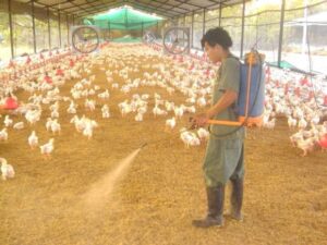 Esto implica que 88 por ciento de las granjas cumplen con la colocación de mallas pajareras, 88.5 con arcos de desinfección operativos, 64 con el tratamiento adecuado de la pollinaza y gallinaza y 74.5 por ciento aprueban las medidas de disposición de cadáveres.